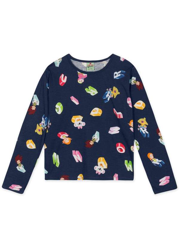 Mundo Ripilica - Blusa Infantil Manga Longa Mundo Ripilica Azul