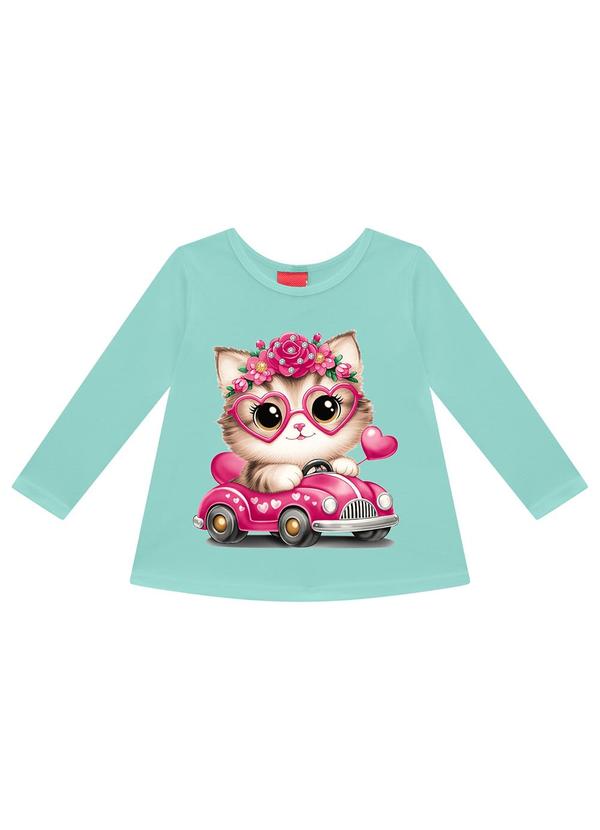 Kyly - Blusa Infantil Menina Gatinho Verde