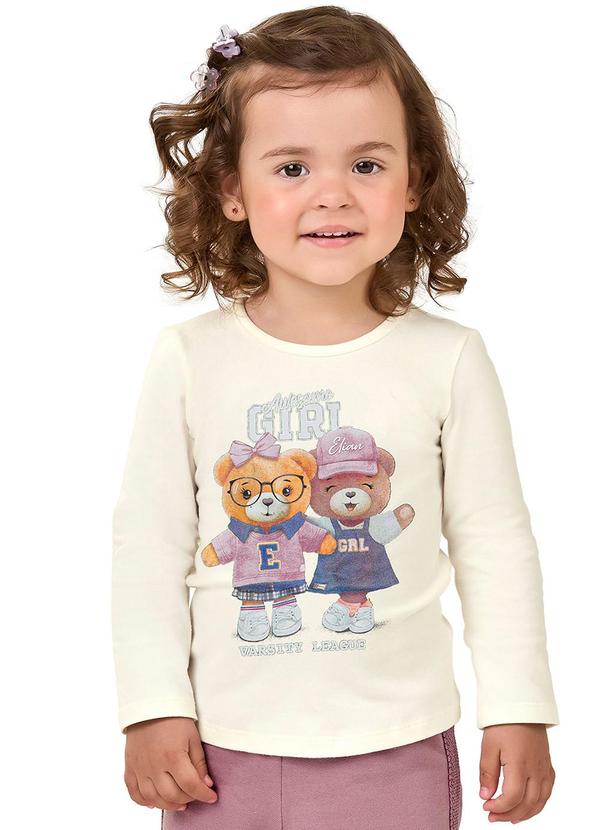 Elian - Blusa Infantil Menina Manga Longa Ursinhos Bege