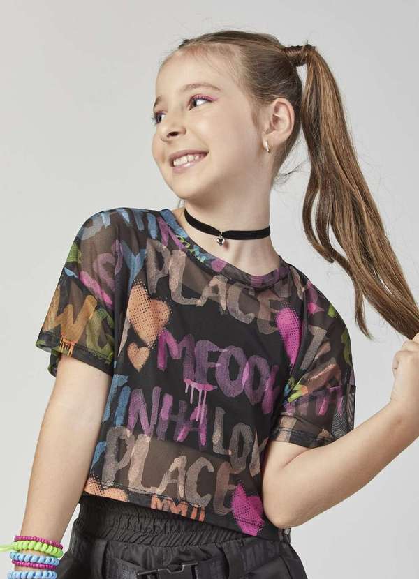 Mylu - Blusa Infantil Mylu Estampada Mesh Fashion Preto