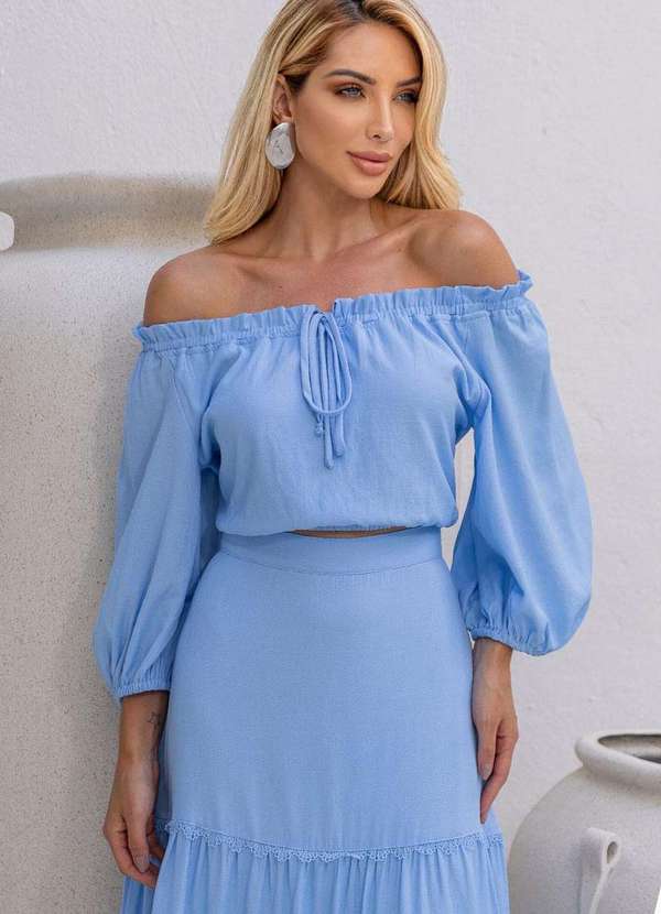 Miss Misses - Blusa Jane Ombro a Ombro Manga Longa Azul