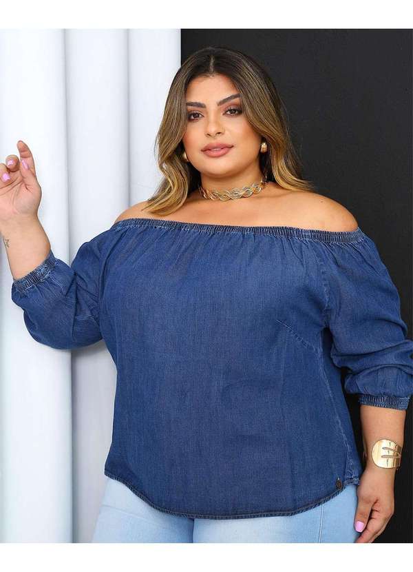 Consciência - Blusa Jeans Feminina Ciganinha Plus Size Azul
