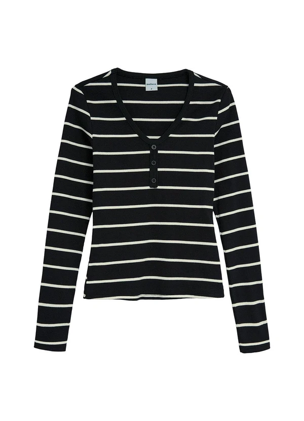 Malwee - Blusa Justa em Ribana Listrada Preto