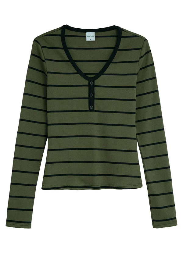 Malwee - Blusa Justa em Ribana Listrada Verde Militar