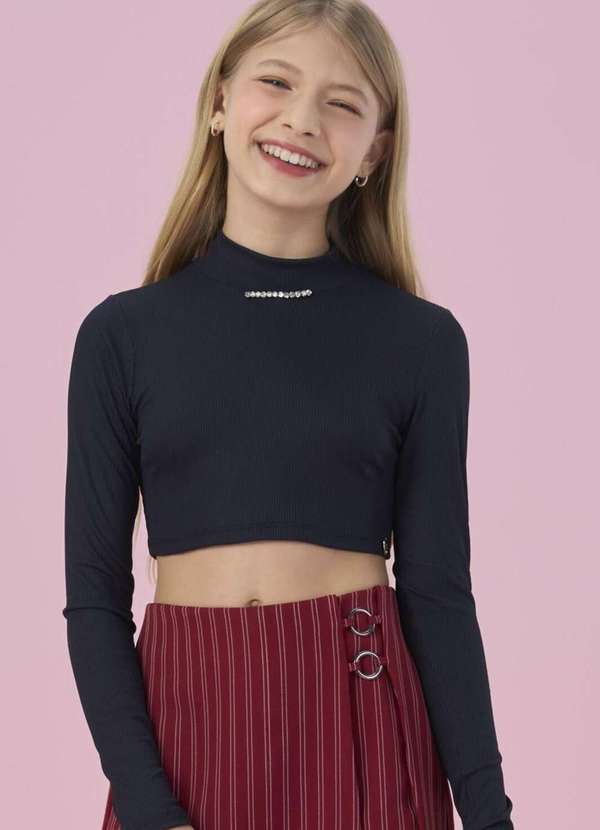 Vanilla Cream - Blusa Juvenil Cropped Preto Vanilla Cream Preto