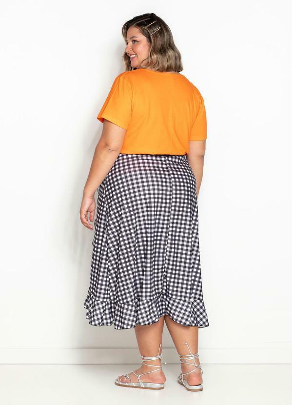 Outlet - Blusa Laranja com Estampa na Frente Plus Size