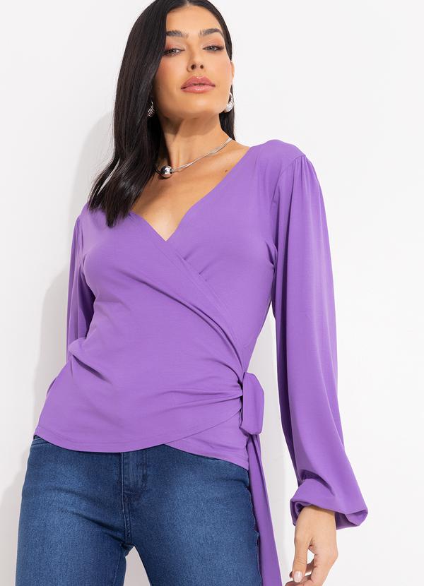 Quintess - Blusa Lilás Transpassada com Mangas Longas