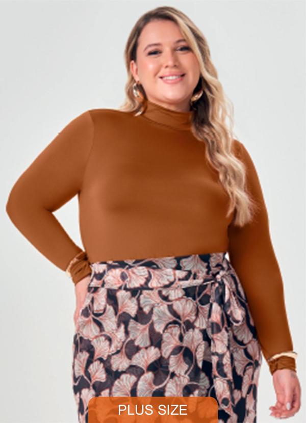 Lisamour - Blusa Lisa de Manga Longa Marrom