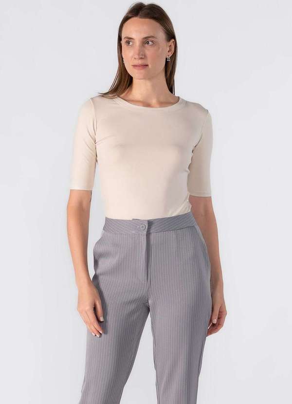 Lamis - Blusa Malha Basica Manga 3/4 Bege