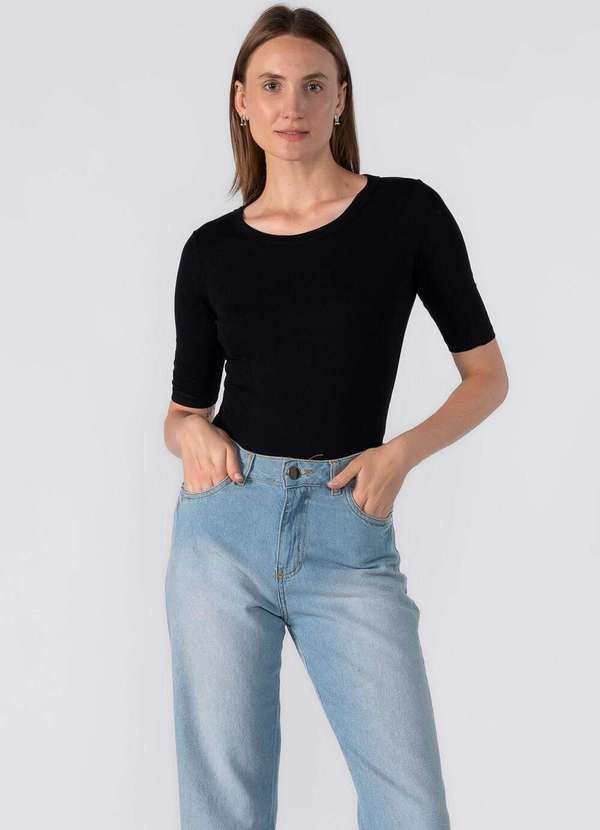 Lamis - Blusa Malha Basica Manga 3/4 Preto