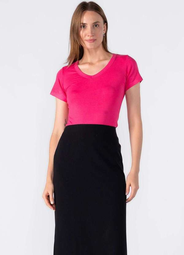 Blusa básica malha manga curta gola V Dica: Usar com calça jeans e tênis Composição:95%viscose 05%elastano Modelo usa:Tamanho P - Medidas 1,75 de altura | 62kg