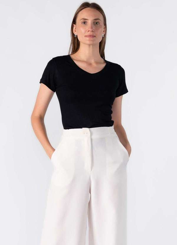 Blusa básica malha manga curta gola V Dica: Usar com calça jeans e tênis Composição:95%viscose 05%elastano Modelo usa:Tamanho P - Medidas 1,75 de altura | 62kg