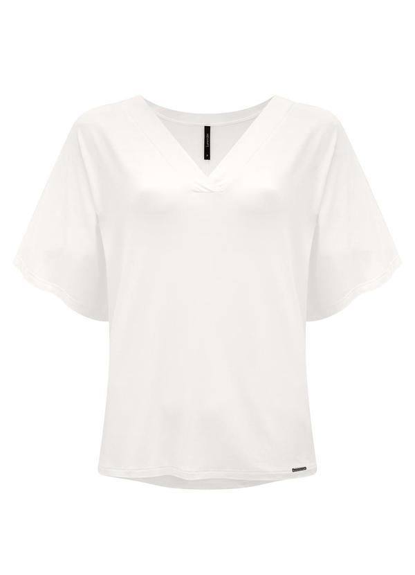 Lunender - Blusa Manga Amplas Decote V Malha Viscose Off White