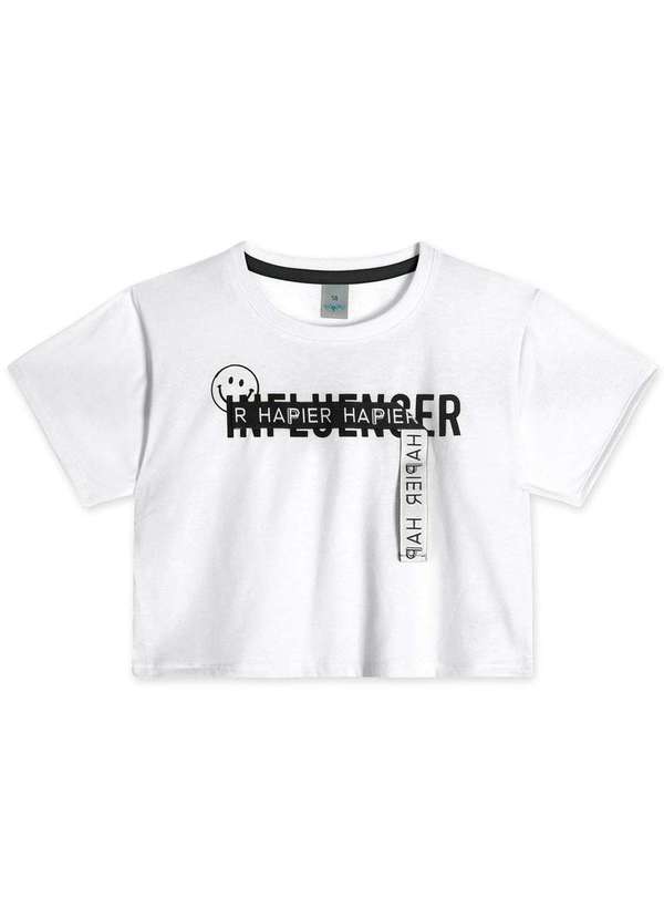 Hapier - Blusa Manga Curta Cropped Juvenil Feminina Hapier Branco