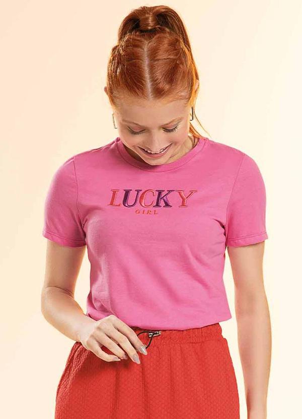 Habana - Blusa Manga Curta Feminina com Bordado Rosa