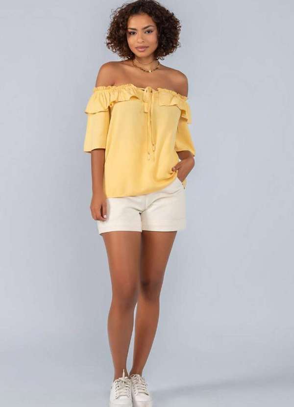 Lamis - Blusa Manga em Viscose Ombro a Ombro com Babado Amarelo