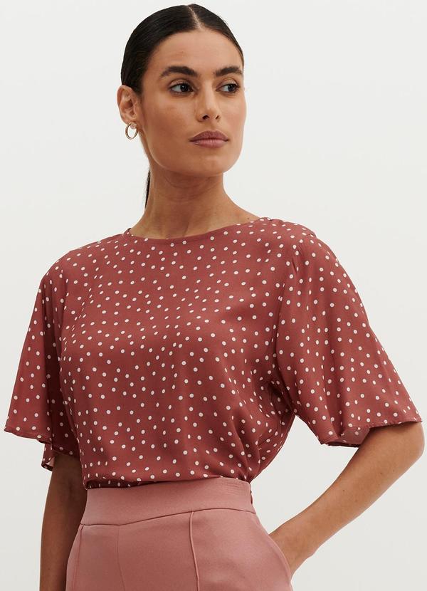Principessa - Blusa Manga Evasê de Poá Antique Rose Itala Estampada