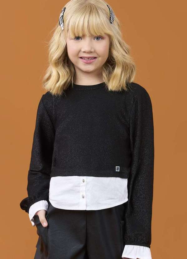 Ok e Pakita - Blusa Manga Longa 2 em 1 Perfeita da Pakita Preto