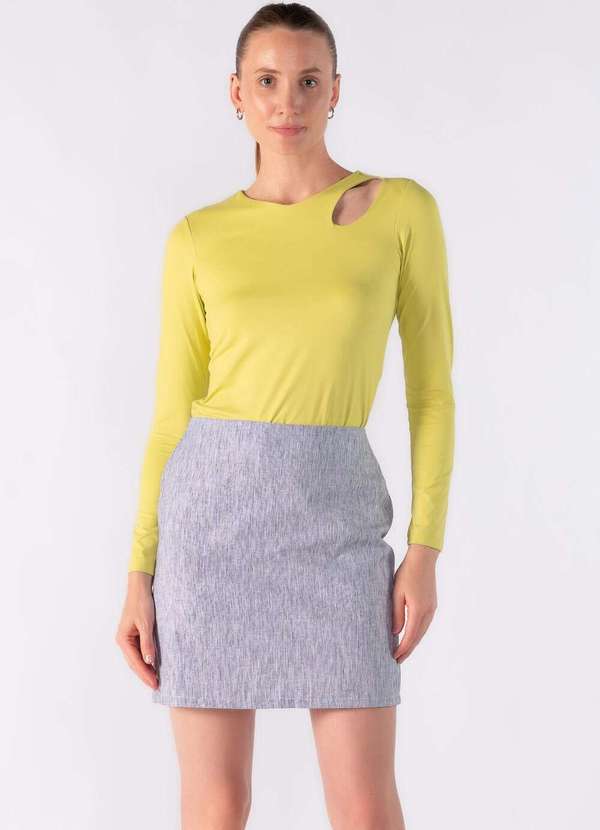 Blusa em malha com recorte Dica: Usar com saia midi e tênis Composição:89%poliamida 11%elastano Modelo usa:Tamanho P - Medidas 1,78 de altura | 55kg.