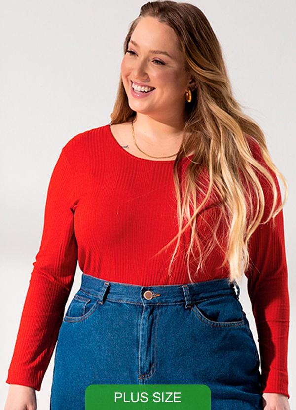 Habana - Blusa Manga Longa em Canelado Plus Size Vermelho