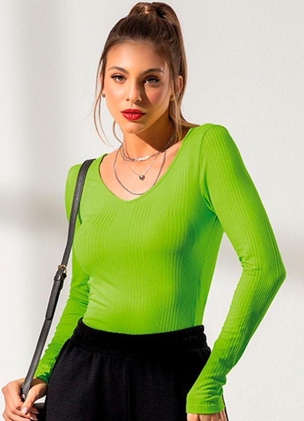 Habana - Blusa Manga Longa em Canelado Verde
