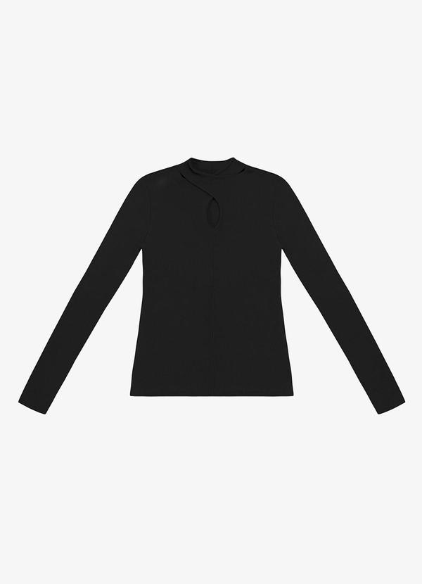 Rovitex - Blusa Manga Longa em Ribana Preto
