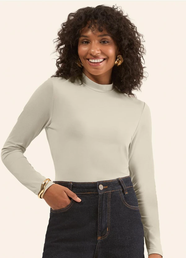 Rovitex - Blusa Manga Longa Gola Alta Bege