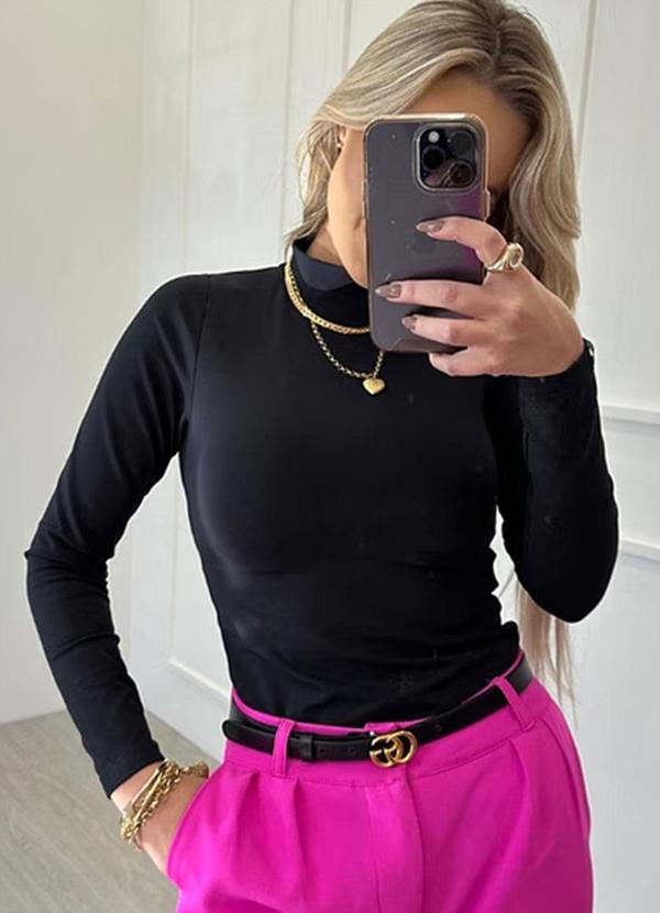 Amo Brand - Blusa Manga Longa Helanca Preta