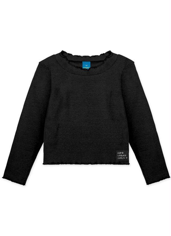 Hapier - Blusa Manga Longa Juvenil Menina Preto
