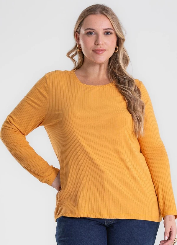 Secret Glam - Blusa Manga Longa Ribana Canelada Amarelo