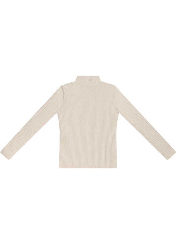 Rovitex - Blusa Manga Longa Ribana Canelada Bege