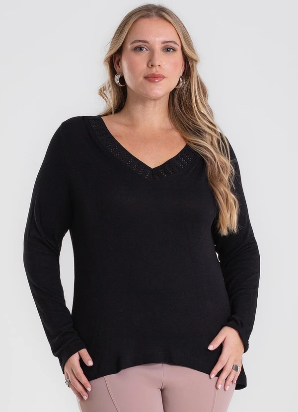 Secret Glam - Blusa Manga Longa Visco Plus Size Preto