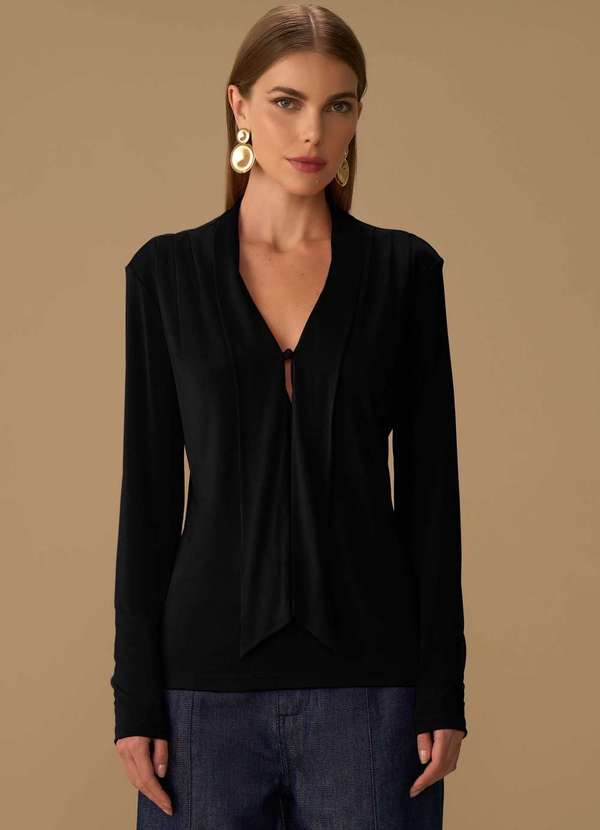Maria.valentina - Blusa Maria.Valentina Ajustada Decote V Manga Longa Padrão Preto Preto