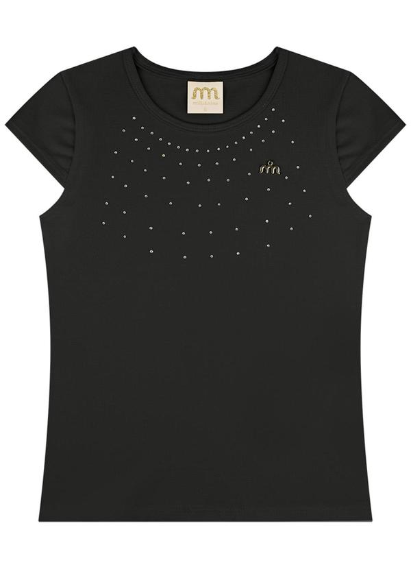 Milli e Nina - Blusa Menina em Cotton Penteado Preto