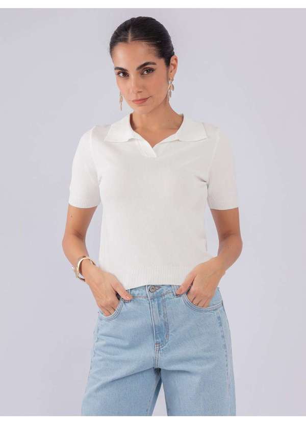 Susie Modas - Blusa Modal Gola Polo Branco