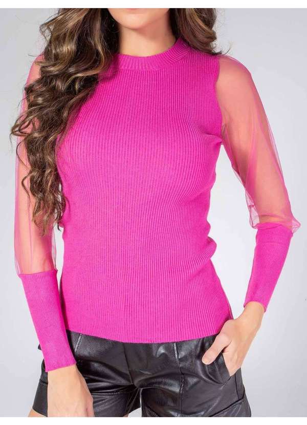 Susie Modas - Blusa Modal Manga Tule Feminina Rosa