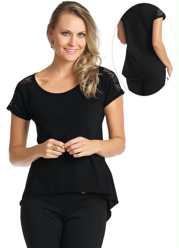 Outlet - Blusa Mullet com Renda nos Ombros Preta