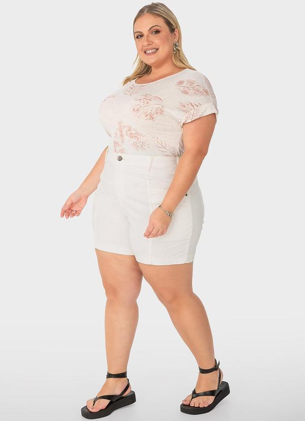 Malwee Plus - Blusa Off White Ampla Tropical em Viscolinho