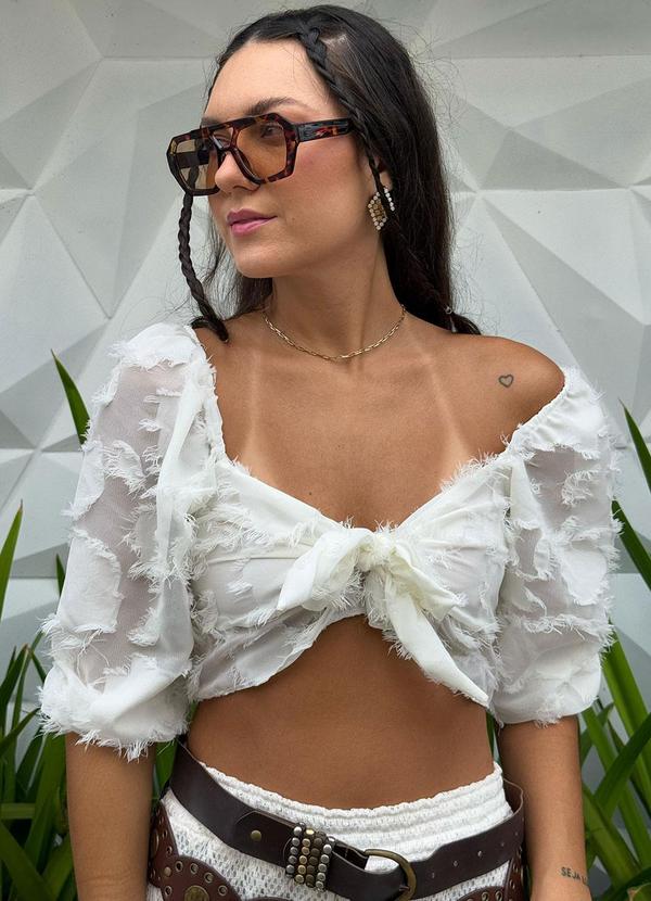 Choyee - Blusa Ombro a Ombro com Mangas Bufantes Bege