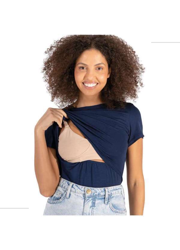 Simple Mama - Blusa para Amamentar Roupa Grávida Gestante Amamentação Azul