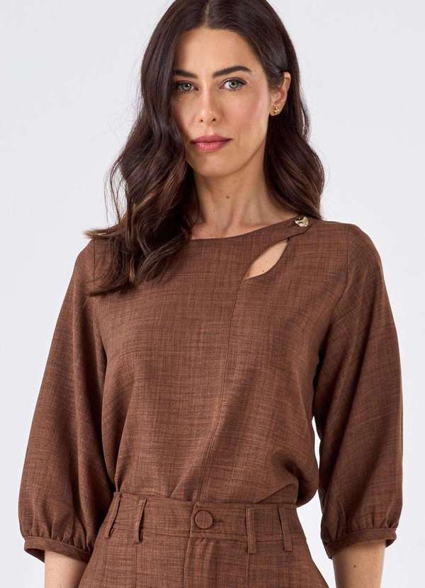 Pks - Blusa Pks Manga 7/8 Marrom