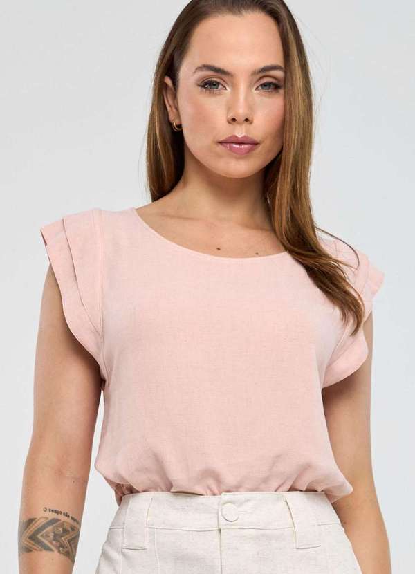Blusa confeccionada em tecido viscose com linho em sua composição, cor rosê, que confere sofisticação e um aspecto natural e respirável à superfície, proporcionando conforto ao vestir e toque macio, não possui transparência. Possui modelagem soltinha, shape reto, decote redondo, comprimento tradicional e acabamento pespontado. O design diferenciado dessa blusa são as mangas levemente estruturadas, que conferem um visual moderno e elegante à peça. Blusa ideal para compor looks práticos do dia a dia, seja no trabalho ou passeio, garantindo elegância e estilo à produção. Invista nessa peça que une o charme do linho com o conforto da viscose, garantindo um caimento impecável e toque suave na pele.