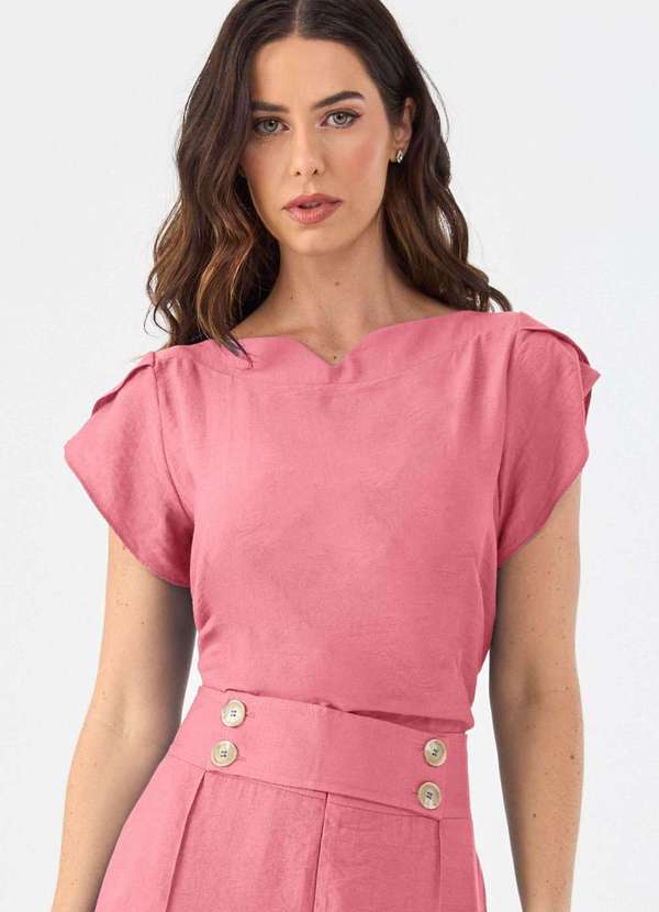 Blusa confeccionada em tecido de viscose na delicada cor rose, proporciona caimento leve e toque suave, garantindo conforto e frescor nos dias mais quentes. O tecido é funcional e prático: não amassa com facilidade, tem secagem rápida e não apresenta transparência ¿ ideal para o uso diário. Com modelagem solta e shape reto, a blusa possui manga curta estilo tulipa, decote canoa, comprimento tradicional, além de acabamento pespontado que valoriza sua delicadeza e qualidade. O design atemporal permite combinações versáteis com calças, saias ou bermudas, adaptando-se com facilidade a diferentes momentos ¿ do ambiente profissional ao lazer. Se você busca uma blusa feminina e elegante, essa é a escolha perfeita!