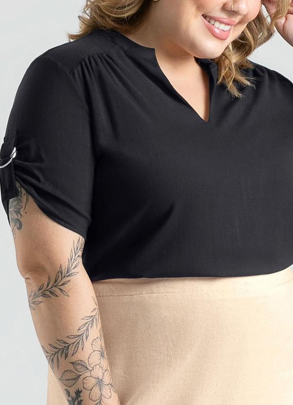 Cativa - Blusa Plus Size Bata Decote Gota Preto