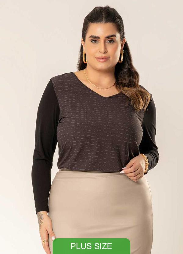 Cativa - Blusa Plus Size de Manga Comprida Bege