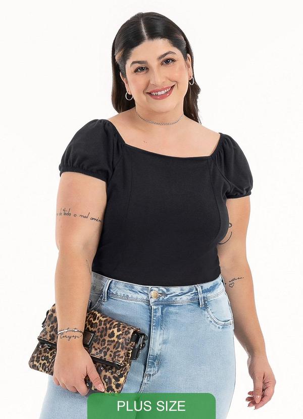 Habana - Blusa Plus Size Decote Quadrado em Cotton Preto