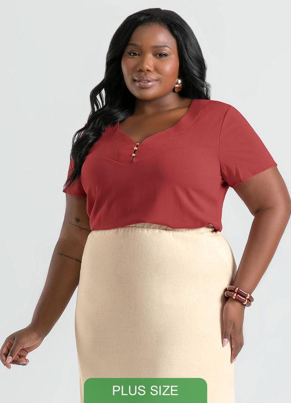 Cativa - Blusa Plus Size Decote V em Viscose Marrom