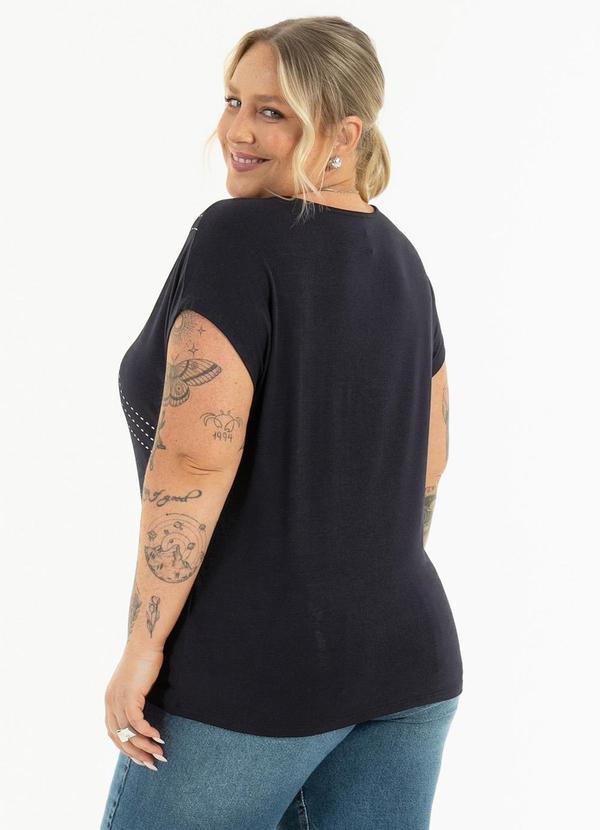 Habana - Blusa Plus Size Decote V em Viscose Preto