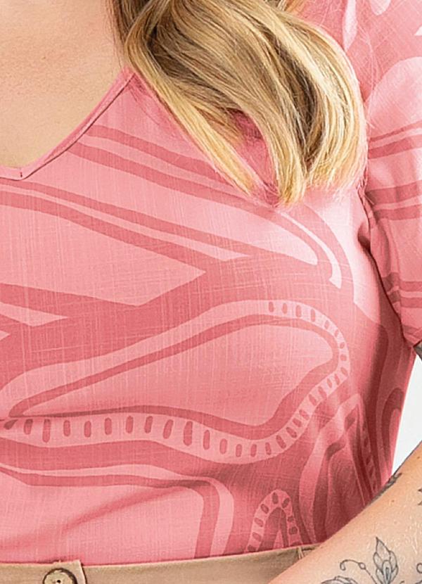 Cativa - Blusa Plus Size Decote V em Viscose Rosa Claro
