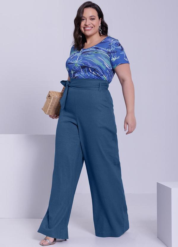 Lunender Mais Mulher - Blusa Plus Size em Malha Viscose Estampada Azul